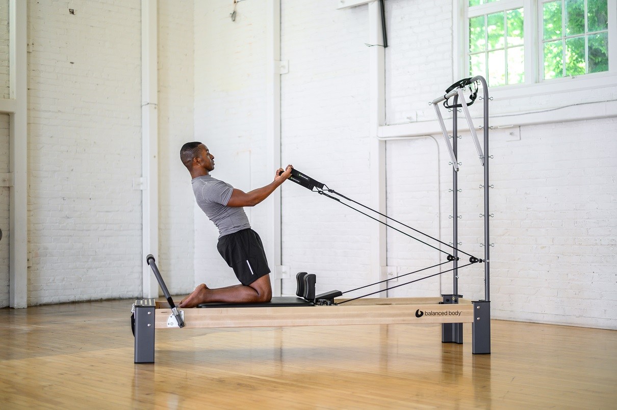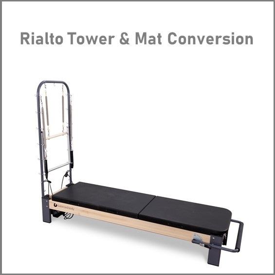 - Reformer hızla Tower antrenmanı için ayarlanabilir. Hareketli platform dikmelerin tarafına çekilir ve mat conversion olarak kullanılacak mat boş alana yerleştirilir.